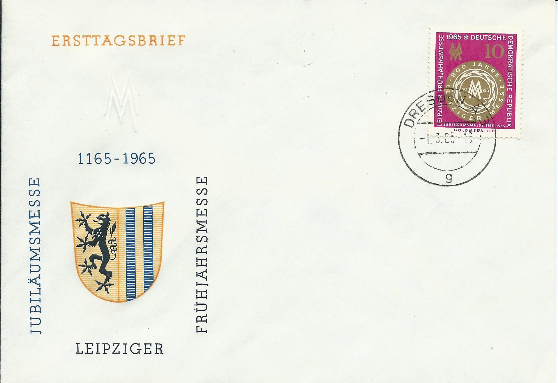 Heinz hat ja hier schon die ganzen Ausgaben der Leipziger Messe vorgestellt. Mir sind dazu noch einige Belege in einer Wühlkiste aufgefallen. Hier kommen die Ausgaben zur Leipziger Frühjahrsmesse 1965, Mi.Nr. 1090 – 1092. Den Anfang macht ein Ersttagsbrief mit allen 3 Werten mit dem Ersttagsstempel aus Leipzig vom 25.2.65: