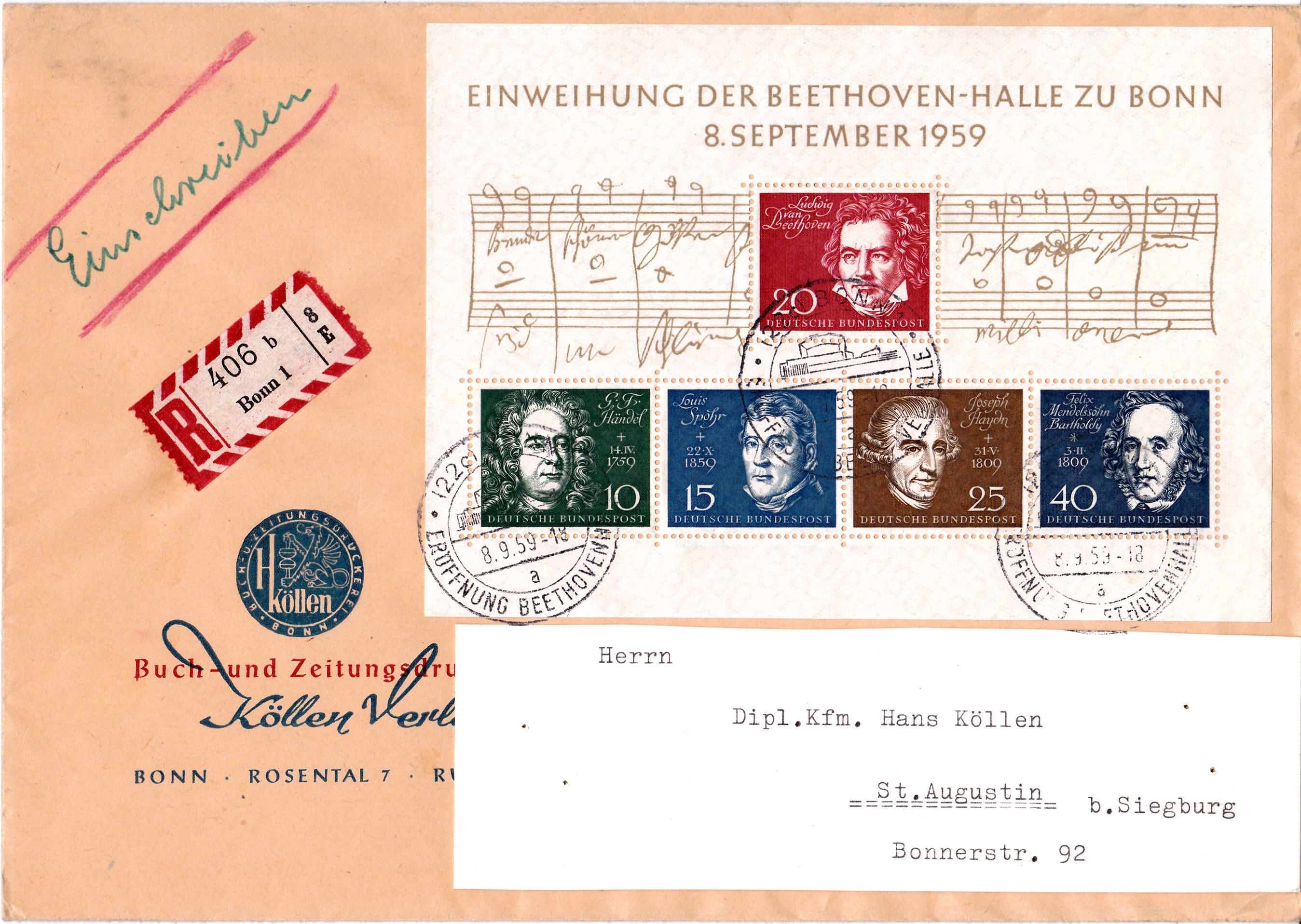Sonderstempel vom 29.10.1999 zur Briefmarkenbörse Sindelfingen zum Thema "50 Jahre Europarat" auf einer Privatganzsache. Im Stempelbild werden Noten der "Europahymne" gezeigt. Die Hymne ist eine Instrumentalfassung des Hauptthemas "Ode an die Freude" aus dem letzten Satz der neunten Sinfonie Ludwig van Beethovens.