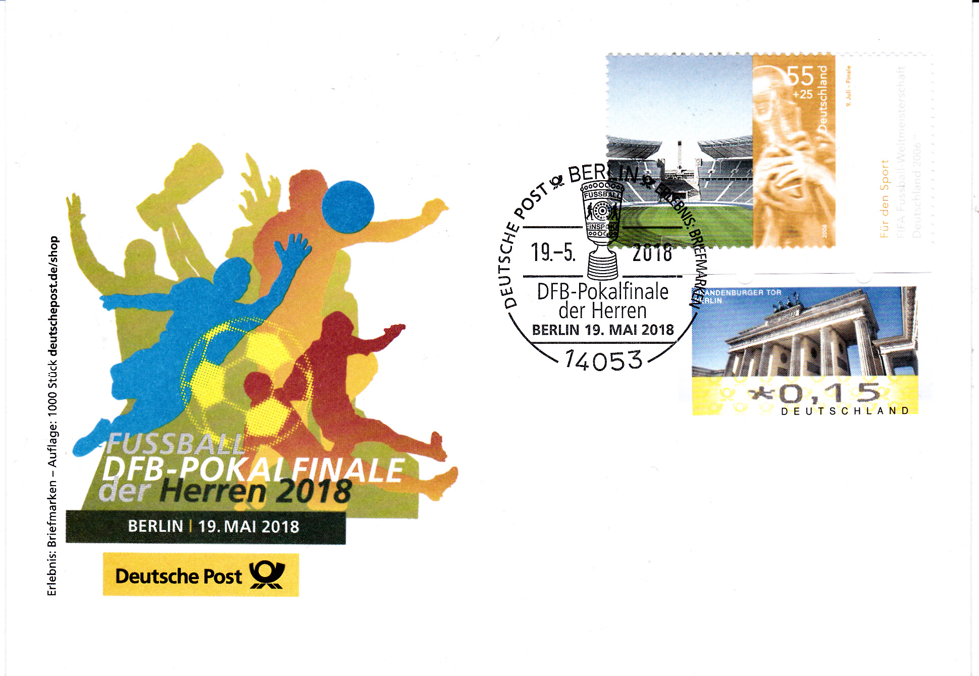 Sonderstempel aus Berlin vom 19.5.2018 zum DFB-Finalspiel Bayern München Genen Eintracht Frankfurt. Die Mannschaft aus Frankfurt besiegte Bayern mit 3:1.