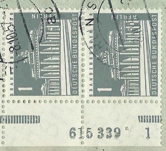Die am 23.02.1957 erschienene Berlin MiNr. 140 wurde ab dem 20.07.1960 auch an den Postschaltern der Bundesrepublik Deutschland verkauft. Die Idee dabei war, daß diese Wertstufe zu 1 Pfennig aus Solidarität zu Berlin zusätzlich zur eigentlichen Frankatur der Sendung verklebt werden sollte.