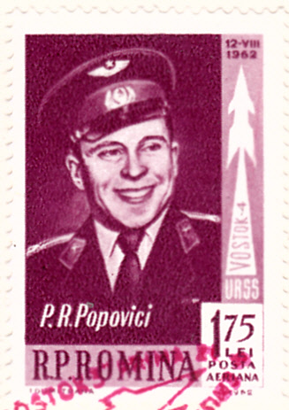 Zum Gruppenflug von Wostok 3 und Wostok 4 sind auch in Rumänien Marken erschienen. Die Marke zu 55 Bani (MiNr 2096) zeigt ein Porträt von Kosmonaut A. G. Nikolajew.