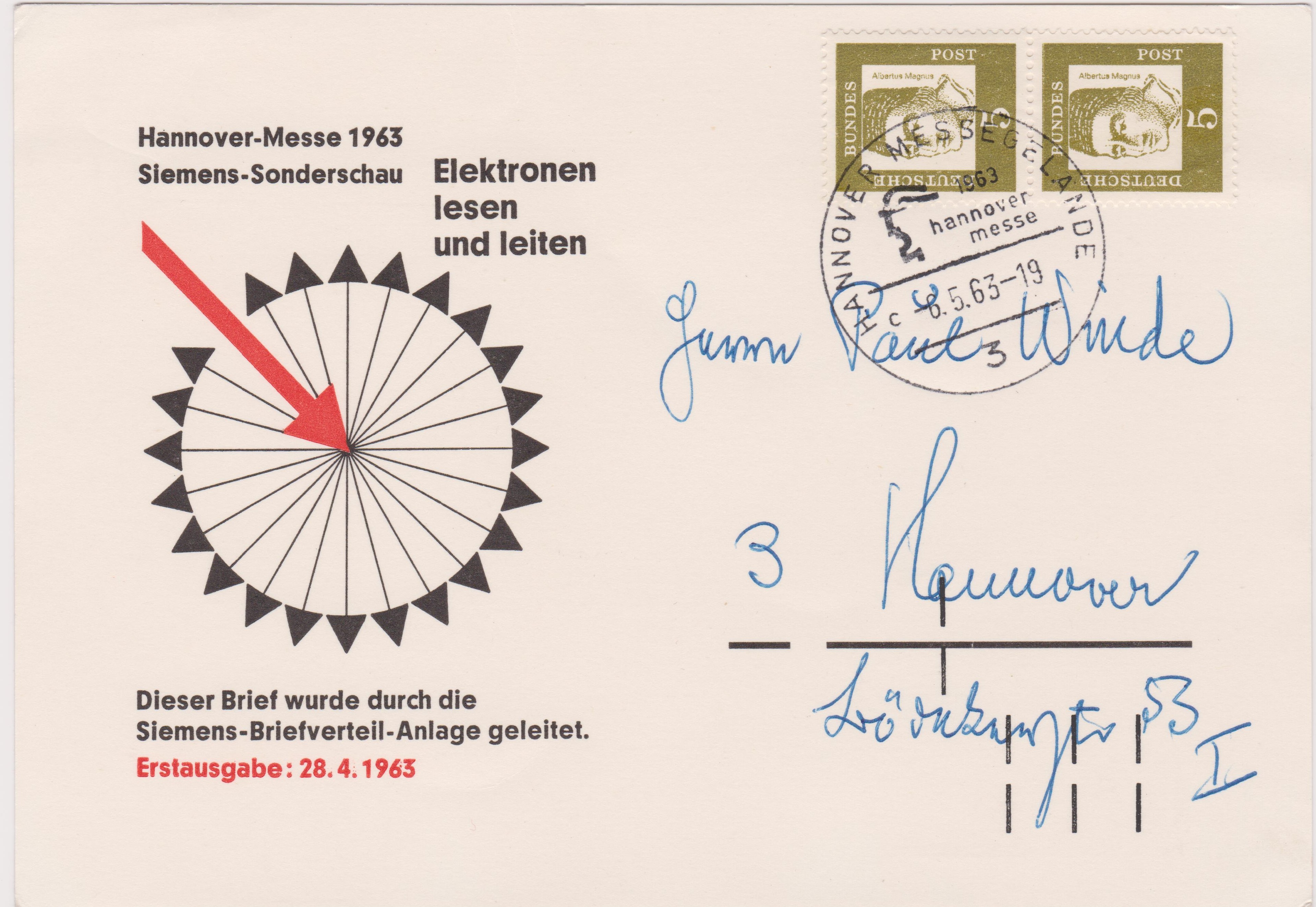 Bei der Hannover-Messe 1963 fand eine Siemens-Sonderschau "Elektronen lesen und leiten" statt.