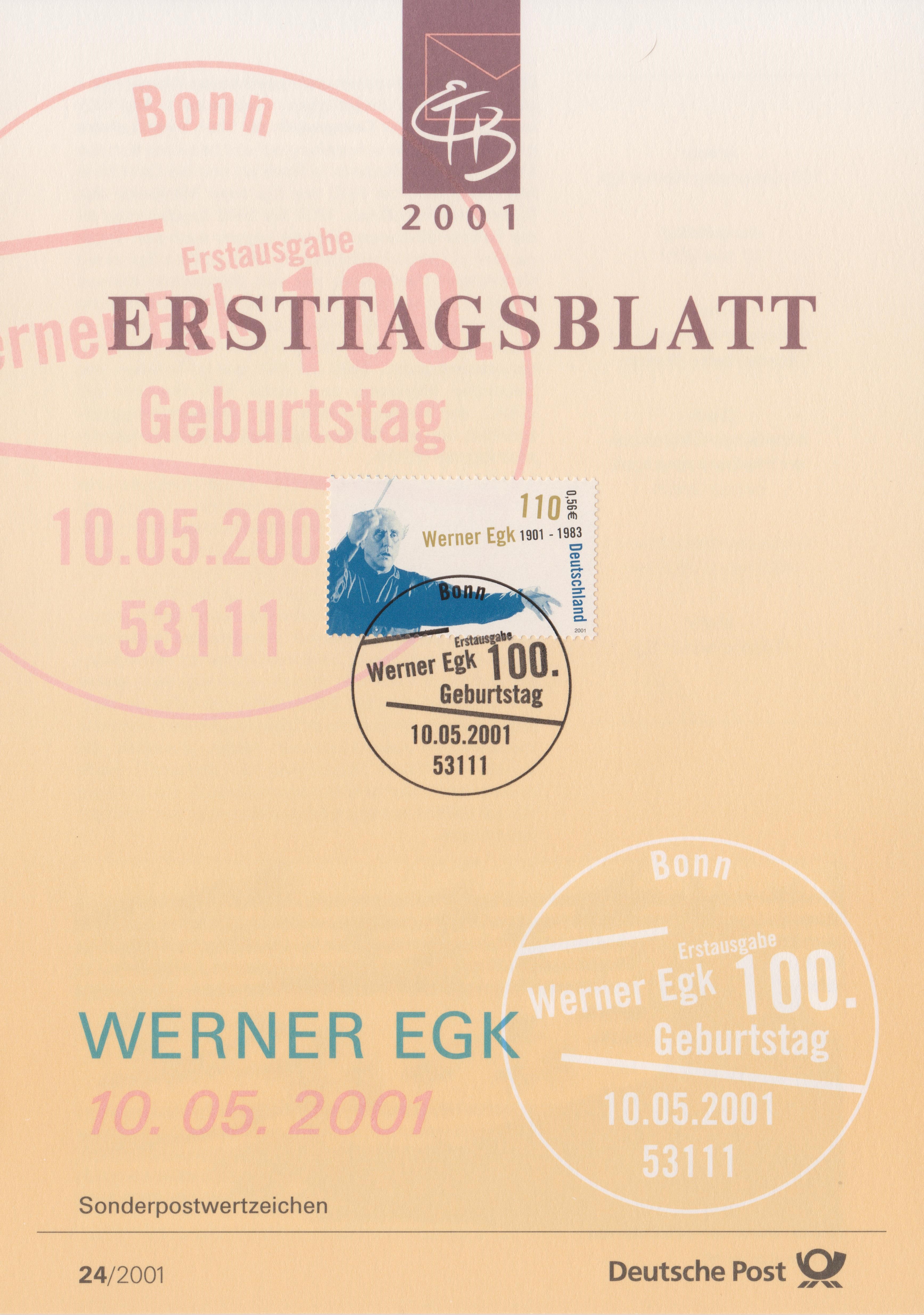 2001 erschien zum 100. Geburtstag von Werner Egk bei der Deutschen Post diese Marke (MiNr 2186).