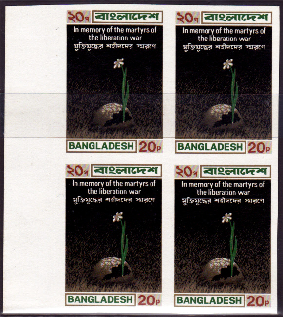 Am 25.3.1973, dem 2. Jahrestag des Blutbades an der Universität von Dacca vom 25./26.3.1971, erschien eine Serie von drei bildgleichen Marken "Märtyrer des Befreiungskrieges". (MiNr 19-21).