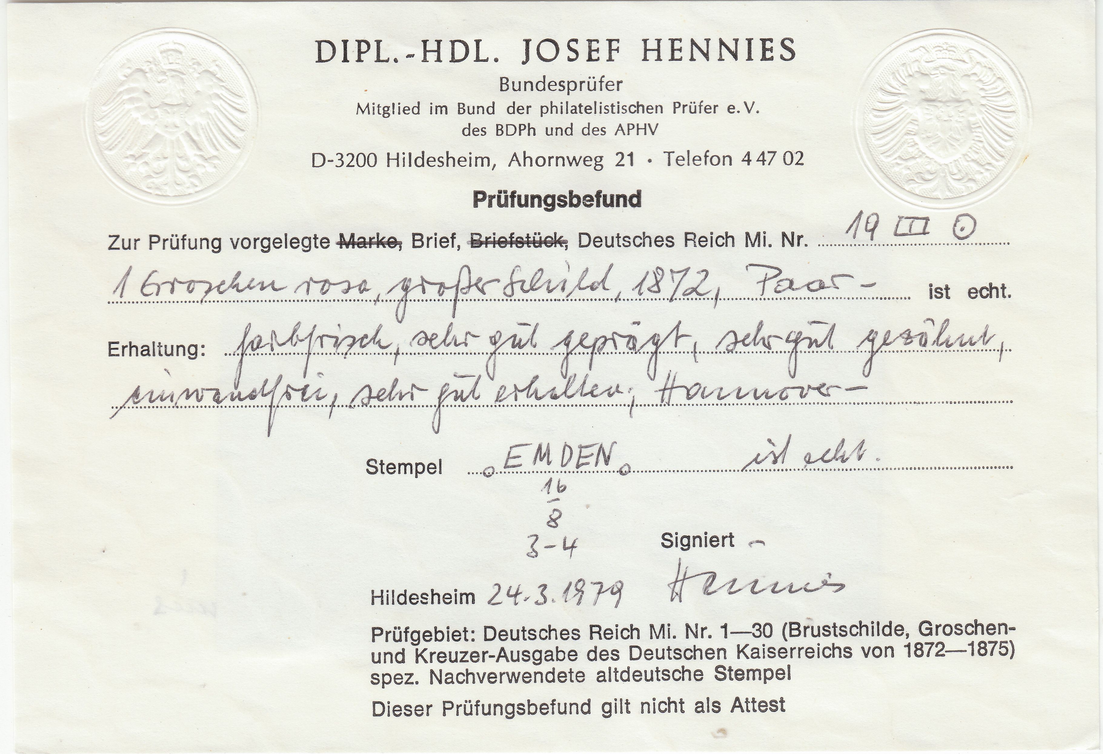 Zu diesem Sammelstück dazu gab es einen Prüfungsbefund von Josef Hennies: