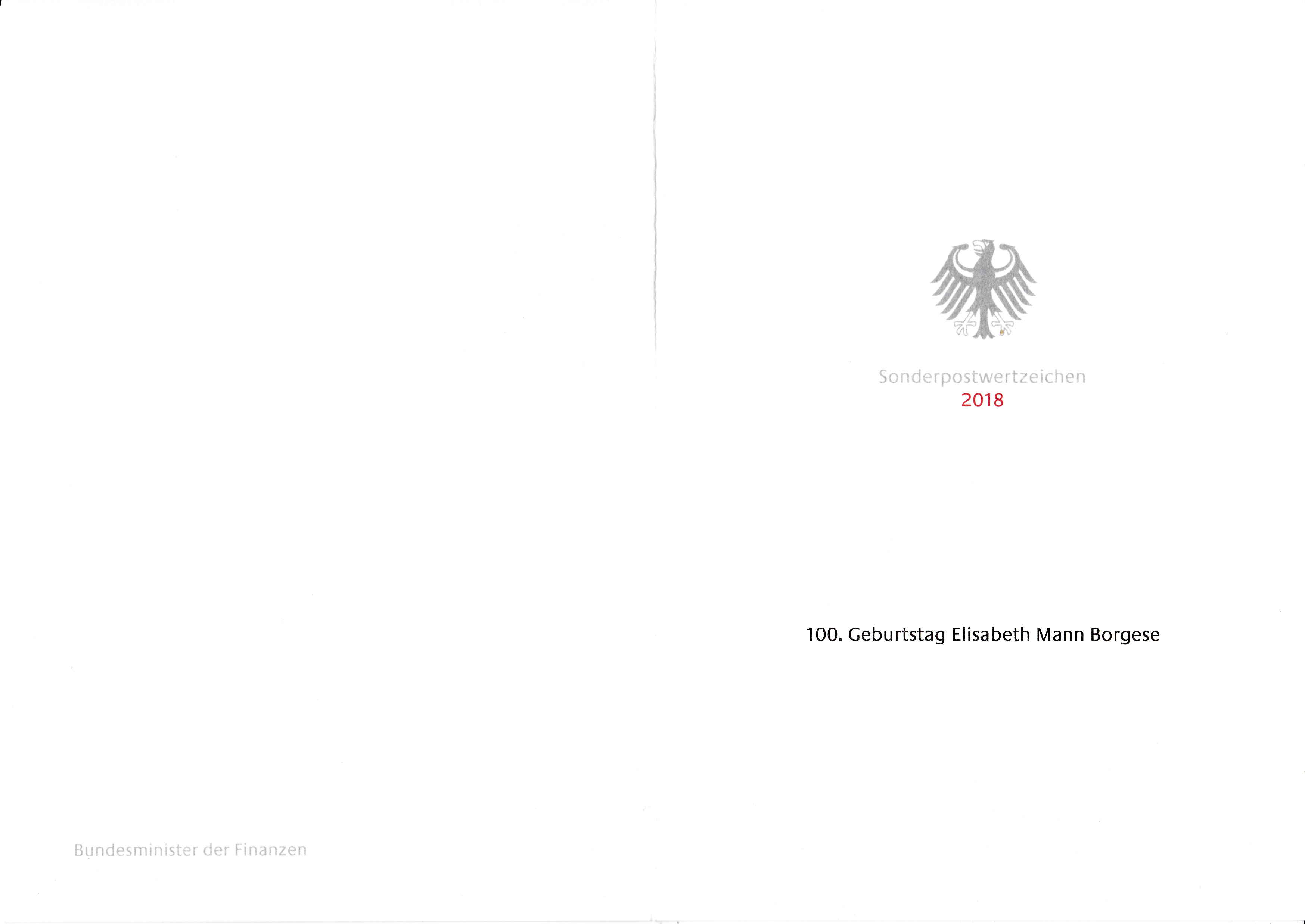 2018 erschien bei der Deutschen Post eine Sondermarke (MiNr 3375) zu ihrem 100. Geburtstag. Hier zeige ich die Ministerkarte des Finanzministers mit den Ersttagsonderstempel aus Berlin und Bonn.