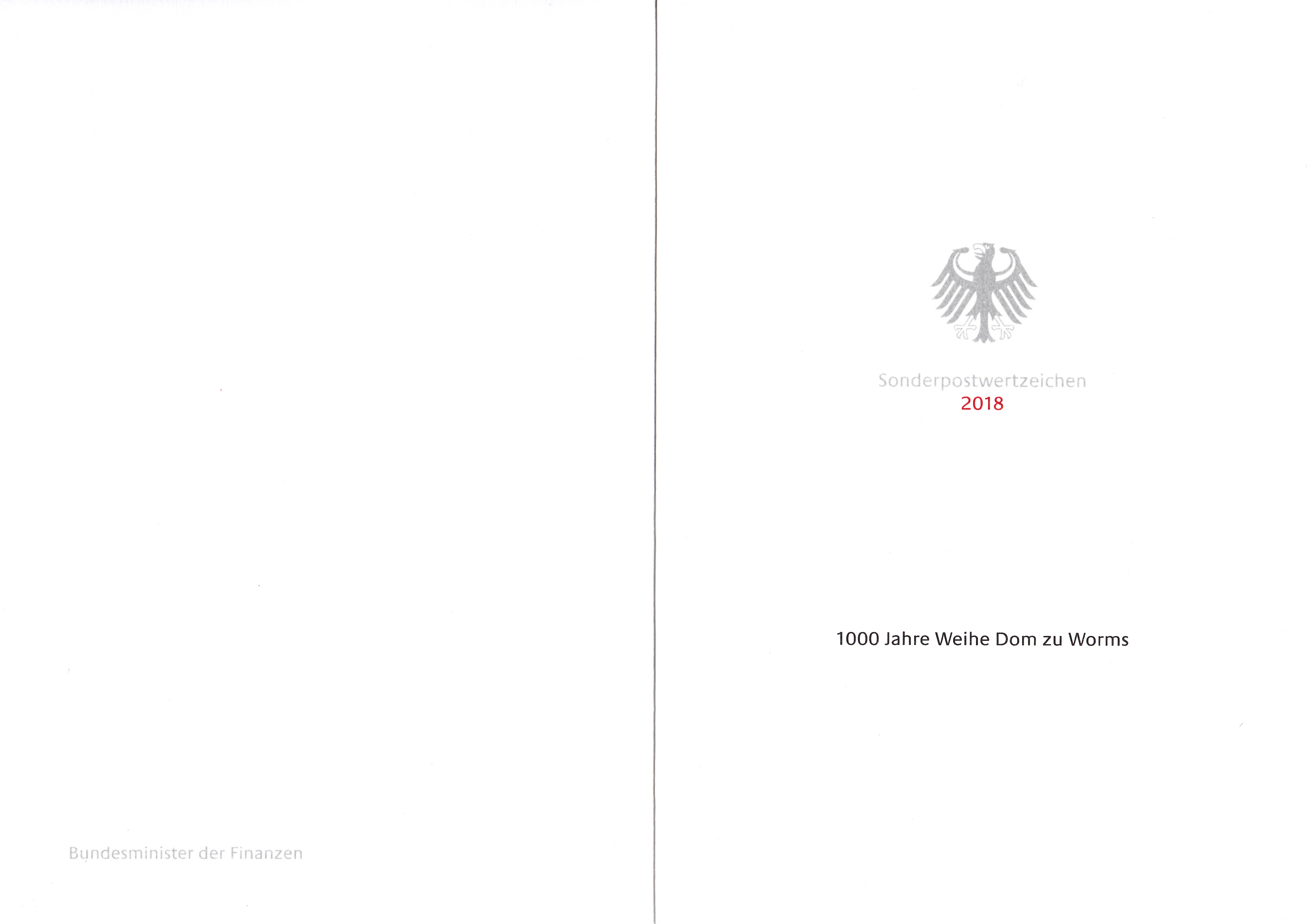Ministerkarte mit zwei Marken "1000. Jahrestag der Weihe des Doms zu Worms" eine mit dem Stempel Berlin und die zweite mit dem Stempel Bonn gestempelt.