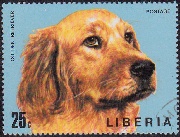 Hier eine Marke aus Liberia (MiNr 918 A) mit dem Kopf eines Golden Retriever. Der Michel beschreibt das Motiv mit "Setter".
