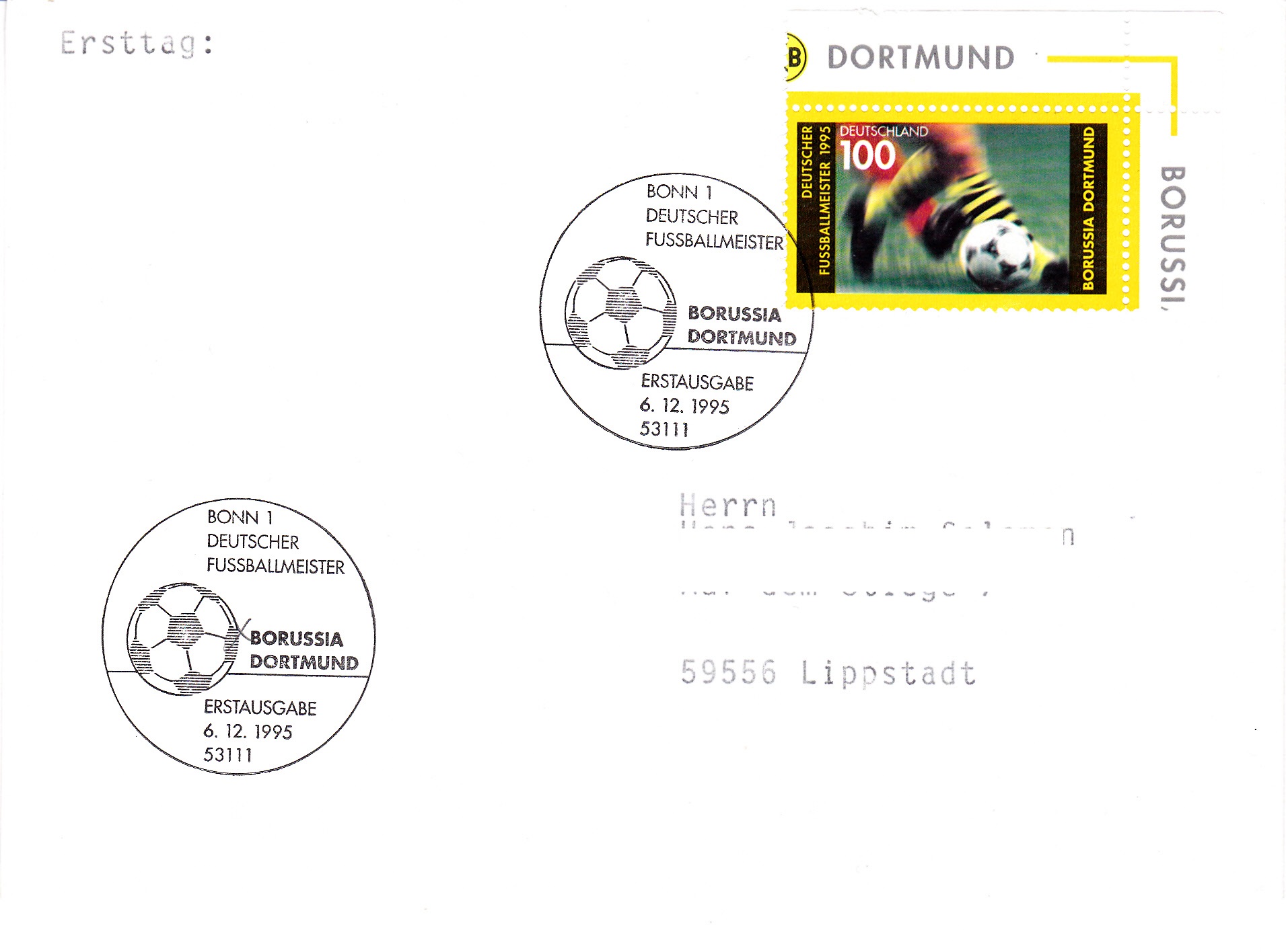 Sonderstempel aus Suhl vom 1.5.1998 zur Erinnerung an die Deutsche Meisterschaft 1996 und den Sieg in der Champions League 1997 und im Weltpokal 1997.
