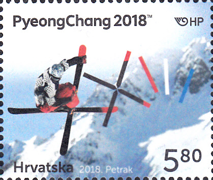 Zu den Olympischen Winterspiele in Pyeongchang ist in Kroatien eine Marke (MiNr 1302) erschienen. Sie zeigt einen Sportler beim Freestyle-Skiing.