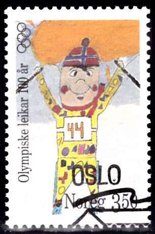 In Norwegen ist zum Thema "100 Jahre Olympische Spiele der Neuzeit" diese Marke (MiNr 1206) mit einer Kinderzeichnung "Skilanglauf" von Håkon Haug Paulsen (10 J.) erschienen.