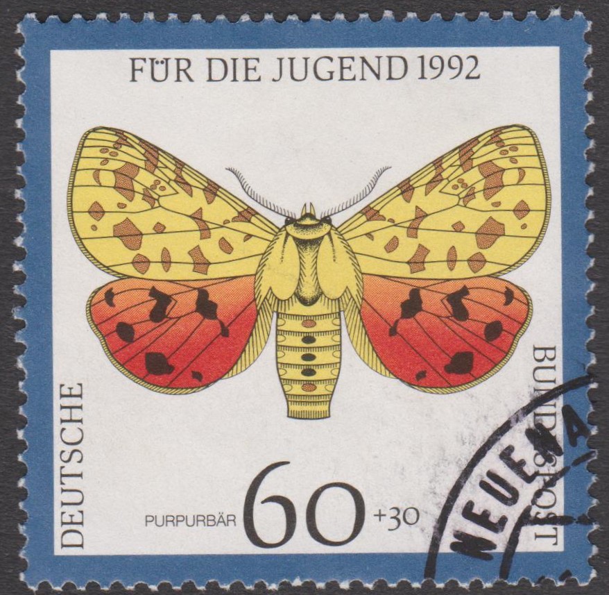 Hier eine Marke aus Ungarn (MiNr 2994 A) mit einem Purpurbär (Rhyparia purpurata).