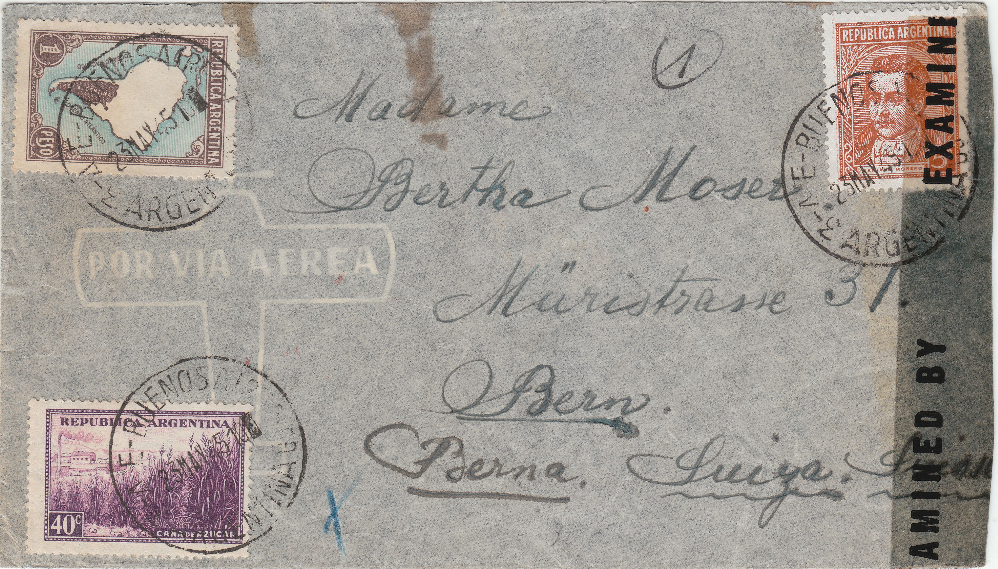 Hier ein zweiter solcher Beleg, aufgegeben am 23.05.1945 in Buenos Aires, adressiert nach Bern: