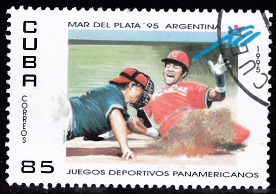 Auf einer Marke aus Cuba (MiNr 3806) zu den 12. Panamerikanische Sportspiele 1995 in Mar del Plata/Argentinien ist eine Marke erschienen, die eine Spielszene im Baseball zeigt.