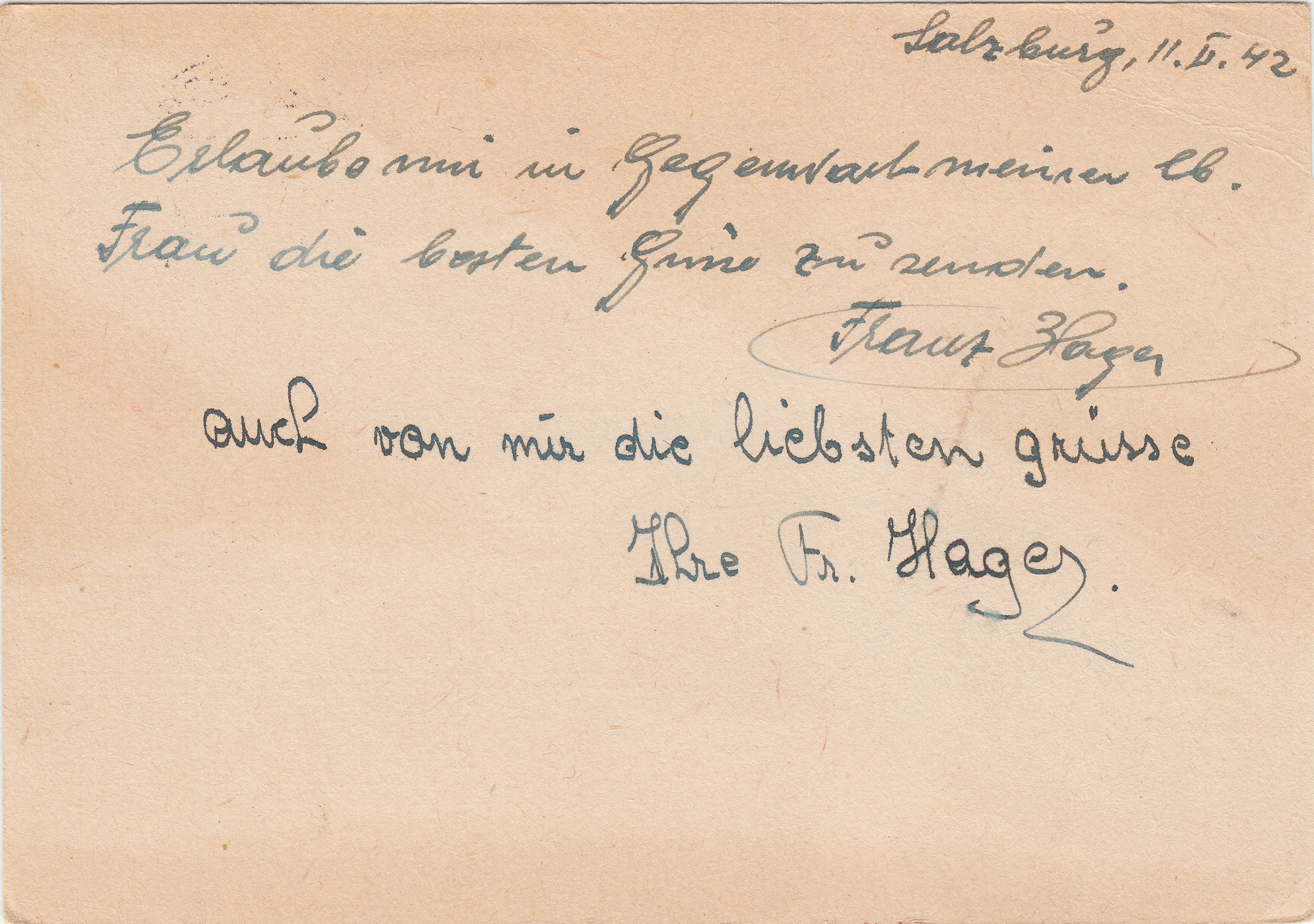 Postkarte ins Ausland, als Ganzsache mit Postwertzeicheneindruck der Wertstufe zu 15 Pfennig der Freimarkenserie Adolf Hitler mit Zusatzfrankatur von 10 Pfennig als Luftpostgebühr portorichtig frankiert, aufgegeben am 13.02.1942 in SALZBURG, adressiert nach Basel: