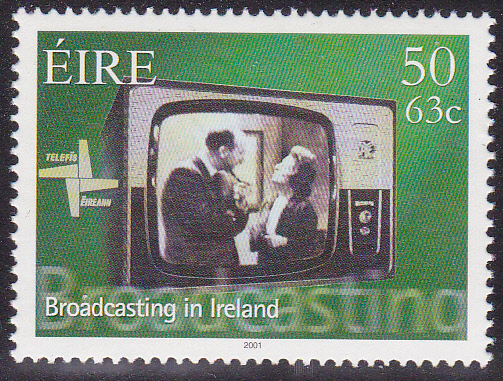 In Irland ist 2001 eine Serie zum Jubiläum "75 Jahre Rundfunk in Irland" erschienen. Hier die Marke zu 32 P/41 Cent (MiNr 1314), die einen Radiosprecher im Studio und ein Mikrophon zeigt.