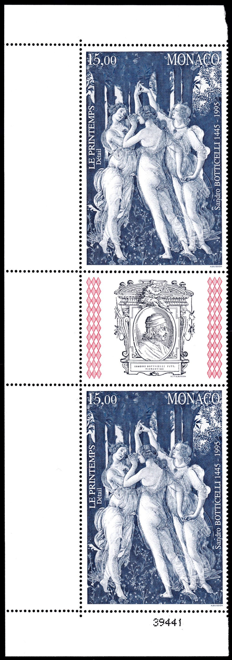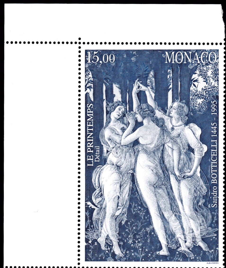 Zum 550. Geburtstag von Sandro Botticelli ist in Monaco diese Marke mit seinem Gemälde "Der Frühling" erschienen.
