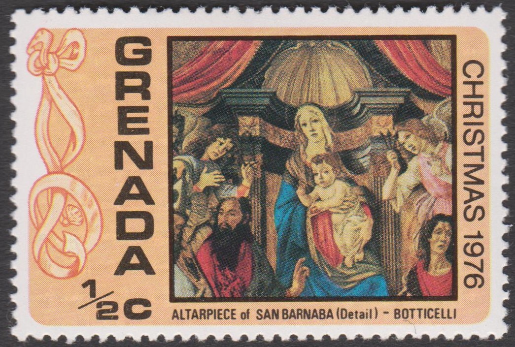 Auf einer Weihnachtsmarke 1976 aus Grenada (MiNr 806) ist ein Detail aus dem Altargemälde von San Barnaba von Sandro Botticelli zu sehen.