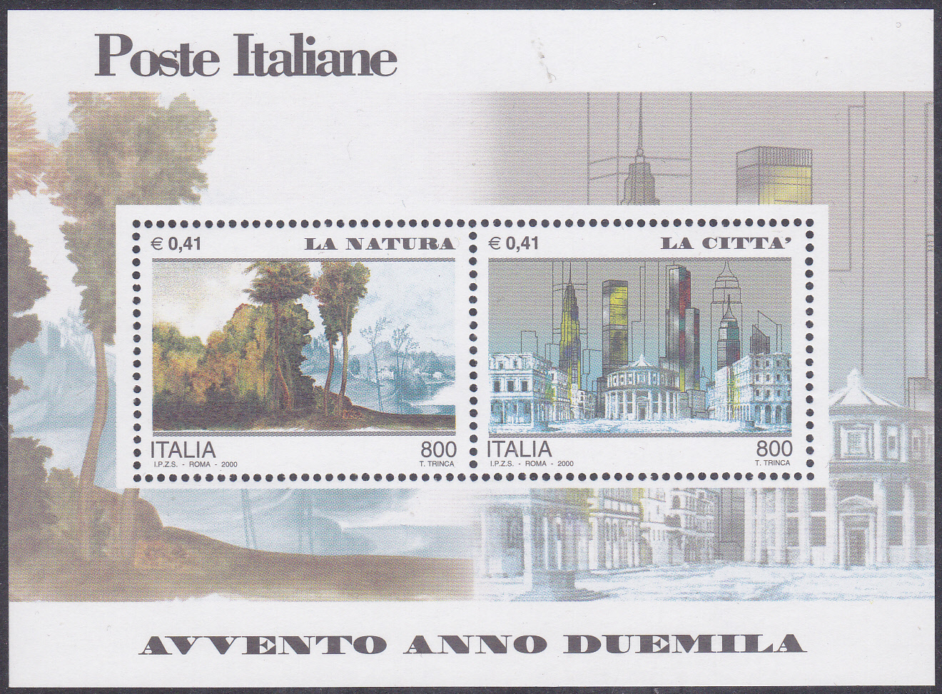 Diese Marke ist zusammen mit einer zweiten Marke in einem Block "Eintritt in das Jahr 2000:Natur und Stadt" (MiNr Block 23) erschienen. Hier folgt ein kompletter Block: