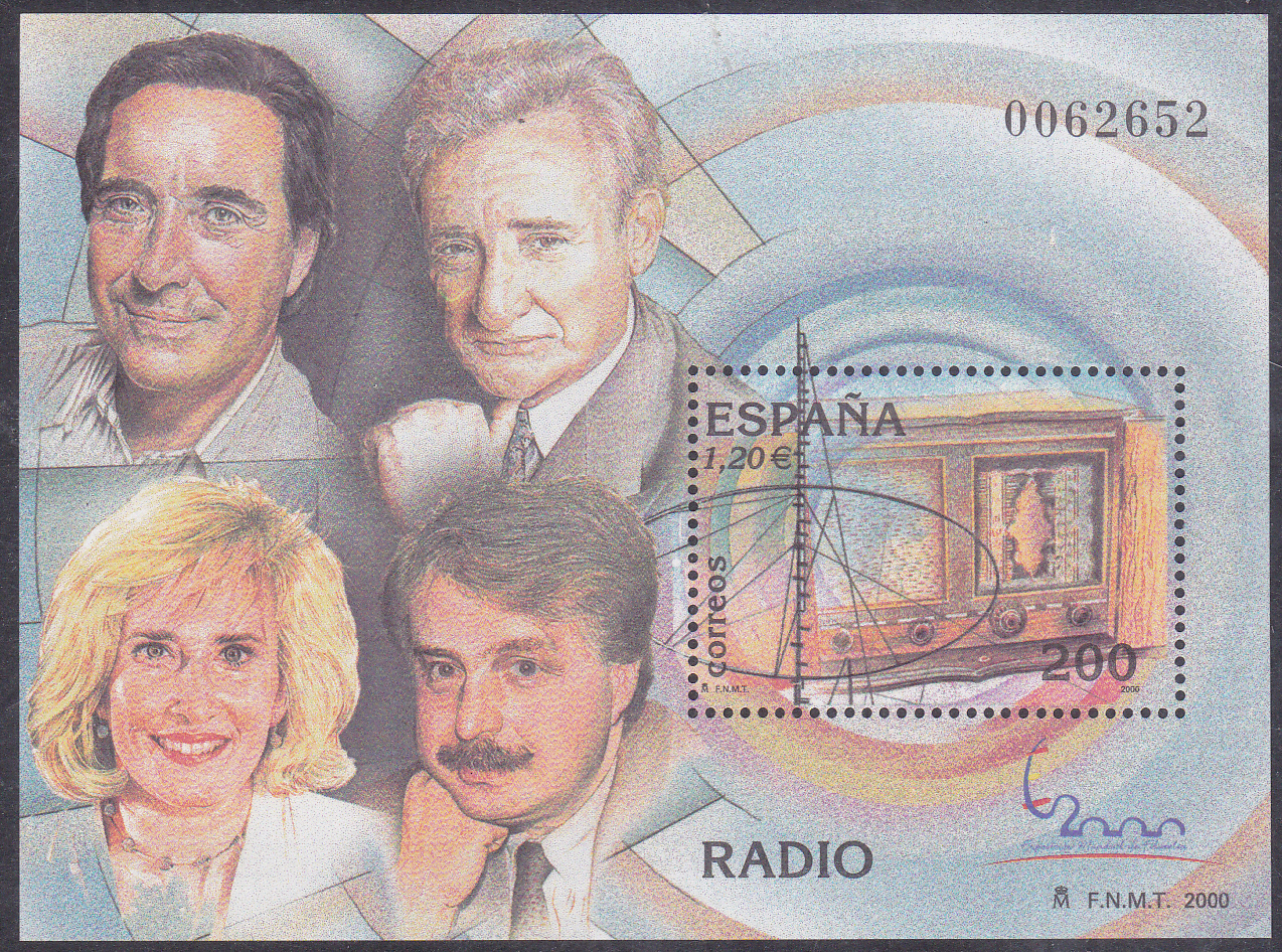 Zur Internationalen Briefmarkenausstellung ESPAÑA 2000 in Madrid erschien in Spanien ein Block (MiNr Block 95 mit Marke MiNr 3598) zum Thema Radio. Die Marke des Blockes zeigt ein altes Radiogerät und eine Parabolantenne.