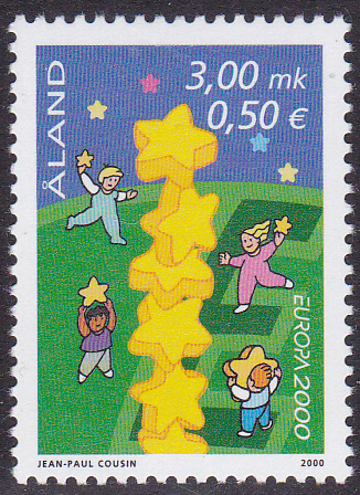 Die bereits von Rüdiger auf einem Beleg gezeigte Europamarke 2000 aus Monaco (MiNr 2499) mit dem Motiv "Kinder bauen Sternenturm" zeige ich hier noch einmal groß als postfrische Marke: