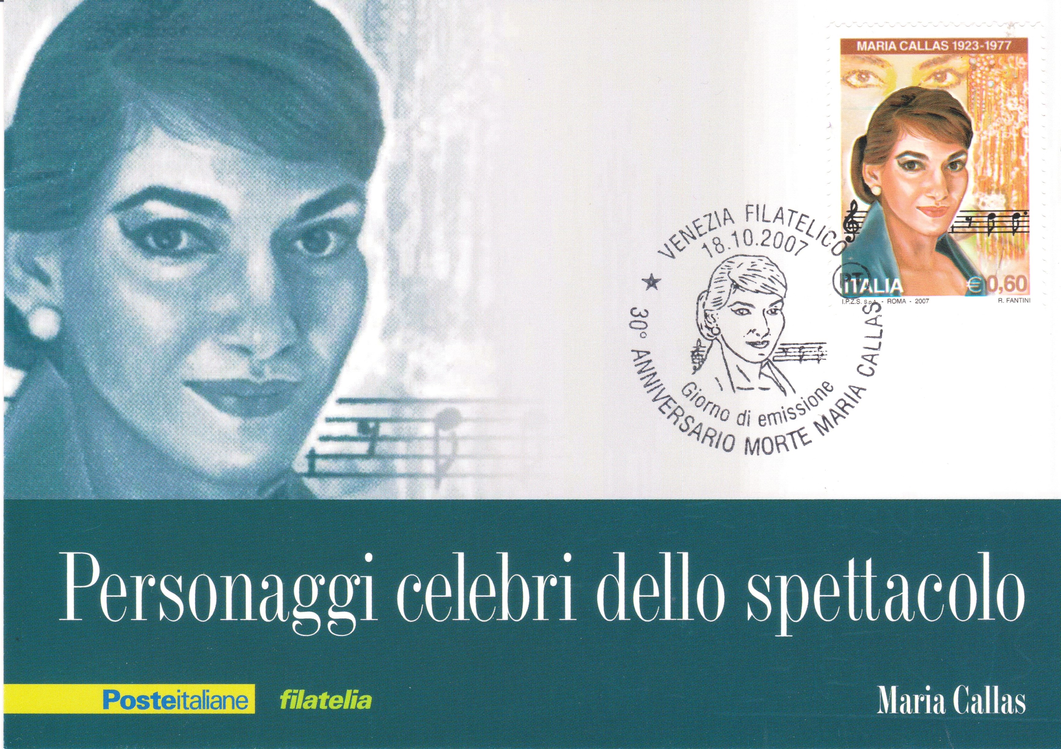 Diese Maximumkarte aus Italien wurde am 18.10.2007 zum 30. Todestag von Maria Callas aufgelegt: