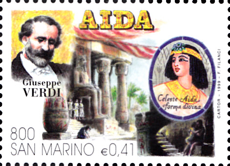 In San Marino ist in der Ausgabe "400 Jahre Oper" eine Marke (MiNr 1819) zu Ehren von Giuseppe Verdi erschienen. Auf der Marke werden ein Porträt von Giuseppe Verdi und eine Szene aus der Oper "Aida" gezeigt.