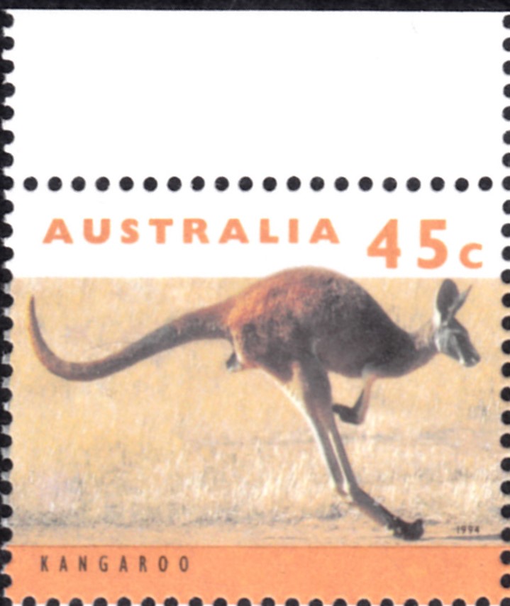 In einer Freimarkenserie "Känguruhs und Koalas" ist in Australien diese Marke (MiNr 1402 a) mit einem Roten Riesenkänguru (Macropus rufus) erschienen.
