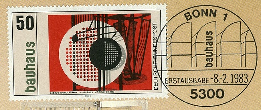 Auf diesem Brief wurde die Marke "100 Jahre Bauhaus" mit dem Ersttagsonderstempel Bonn entwertet.