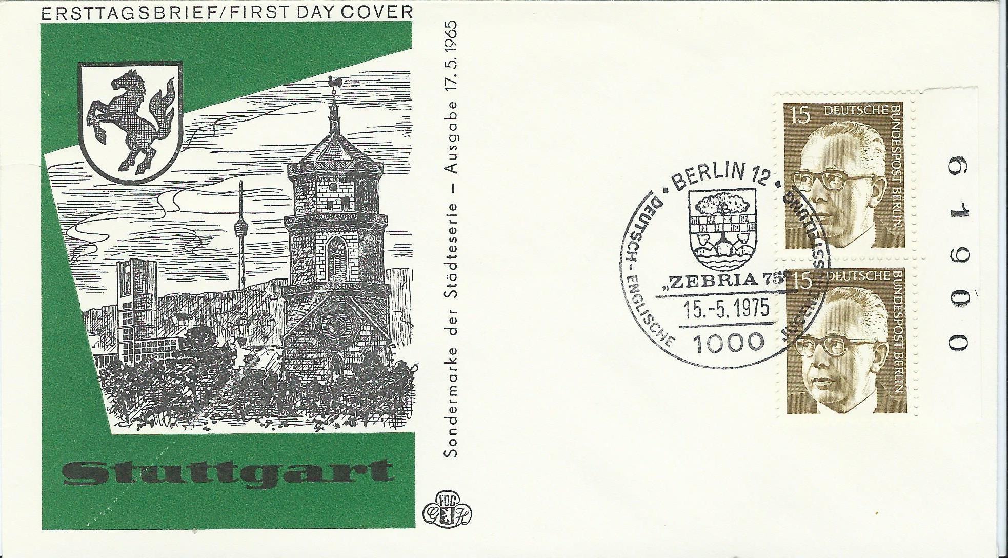 Beim Wert zu 15 Pf ein Bogenzähler mit den Zahlen nach innen stehend mittig in Höhe der waagerechten Zähnung. Die ersten beiden Ziffern sind auffällig dick gedruckt. Gestempelt wurde mit einem Berlin-Sonderstempel vom 10.9.74.
