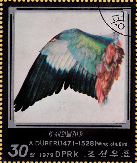 In Nord-Korea ist in einer Serie "Gemälde von Albrecht Dürer" diese Marke (MiNr 1856) mit seinem Werk "Flügel der Nebelkrähe" erschienen.