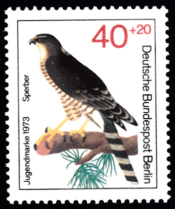 Auf dieser Marke aus Albanien (MiNr 1127) wird ein Sperber (Accipiter nisus) gezeigt.