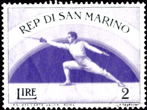 Die auf Seite 2 hier gezeigte Marke aus Rumänien (MiNr 2313) mit der Darstellung einer Kampfszene beim Fechten aus der Markenserie zu den Olympischen Sommerspielen 1964 gibt es auch in einer anderen Farbe als geschnittene Marke (MiNr 2321).