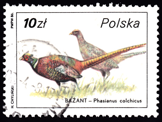 Jagdfasan (Phasianus colchicus) einer Serie "Jagdbare Wildtiere" ist in Polen diese Marke (MiNr 3021) mit einem Jagdfasan (Phasianus colchicus) erschienen.