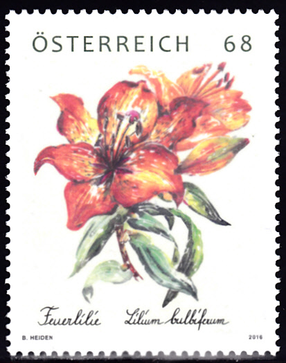 Auch in Österreich wurde eine Marke (MiNr 3252) mit einer Feuerlilie (Lilium bulbiferum) verausgabt. Diese Marke wurde von der Post nicht verkauft, sondern nur an ihre Kunden verschenkt.