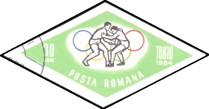 Die auf Seite 5 hier gezeigte Markenausgabe aus Rumänien zu den Spielen in Tokio gibt es auch in anderen Farben als ungezähnte Marke. Sie haben eine eigene Michelnummer. Hier zuerst die Marke zu 20 Bani (MiNr 2317) mit einem Hochspringer.