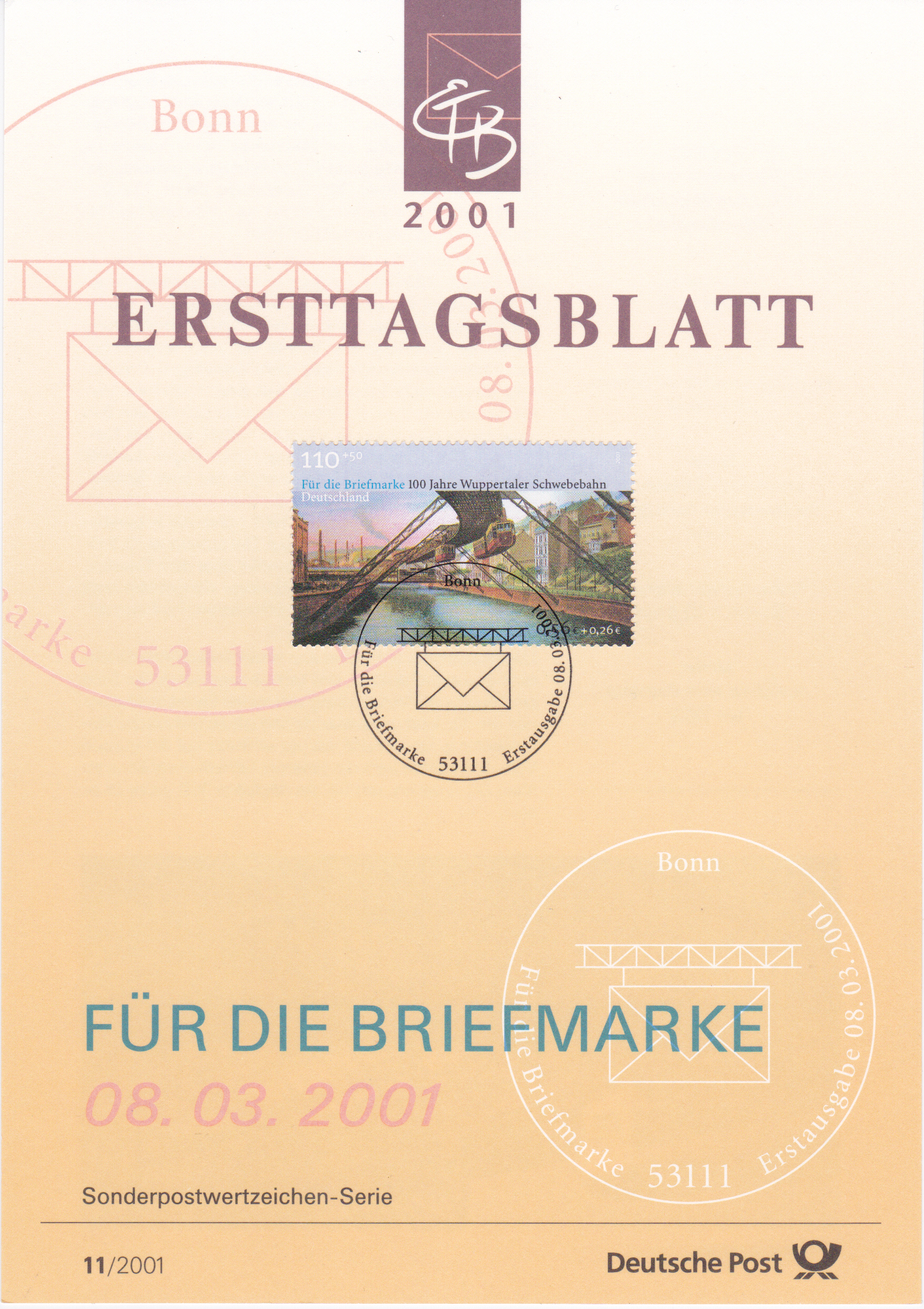 Der bereits gezeigte Sonderstempel aus Sindelfingen zum Tag der Briefmarke 2001 mit einem Porträt von Hermann Hesse wurde hier auf einem Plusbrief (MiNr USo 21 A I) nach Bad Aibling abgeschlagen.