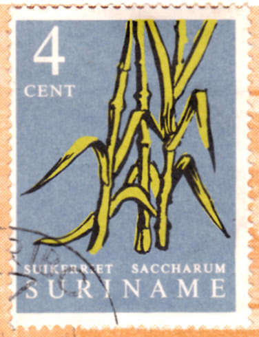 Auf dieser Marke aus Surinam (MiNr 392) wird Zuckerrohr gezeigt.