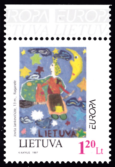 In Litauen erschien diese Europamarke 1997 (MiNr 637) zum Gemeinschaftsthema "Sagen und Legenden" mit einer Kinderzeichnung "Hexe".