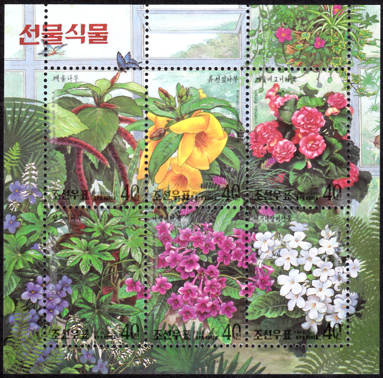 Auf dieser Marke aus Nord-Korea (MiNr 4212) ist eine Begonia-Elatior-Hybride (Begonia × hiemalis) abgebildet.