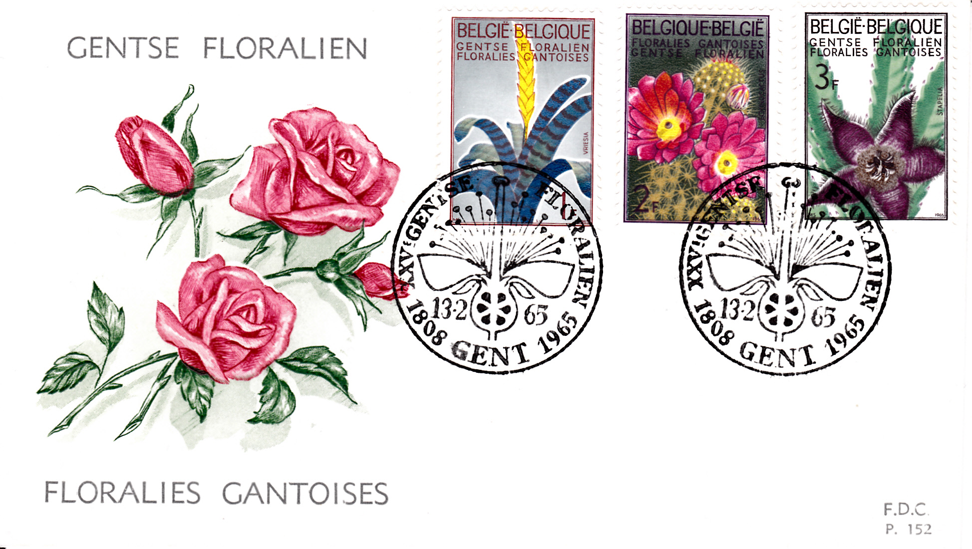 FDC mit den drei Marken der Serie und einem passenden Sonderstempel aus Gent.