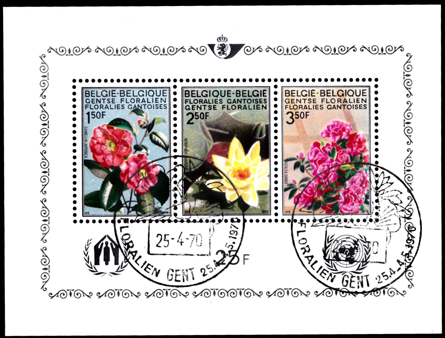 Auf dieser Marke (MiNr 1581 I) aus einer belgischen Serie zur Genter Blumenschau 1970 wird eine Blüte der Seerose Nymphaea "Sunrise" gezeigt.