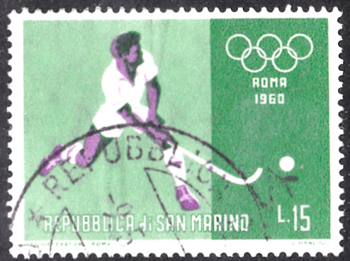 In San Marino ist in der Serie zu den Sommerspielen 1960 in Rom auch diese Marke (MiNr 651) mit einem Hockeyspieler erschienen.