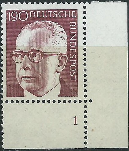 Der Wert Heinemann zu 190 Pf als postfrisches rechtes Eckrandstück mit Formnummer 1: