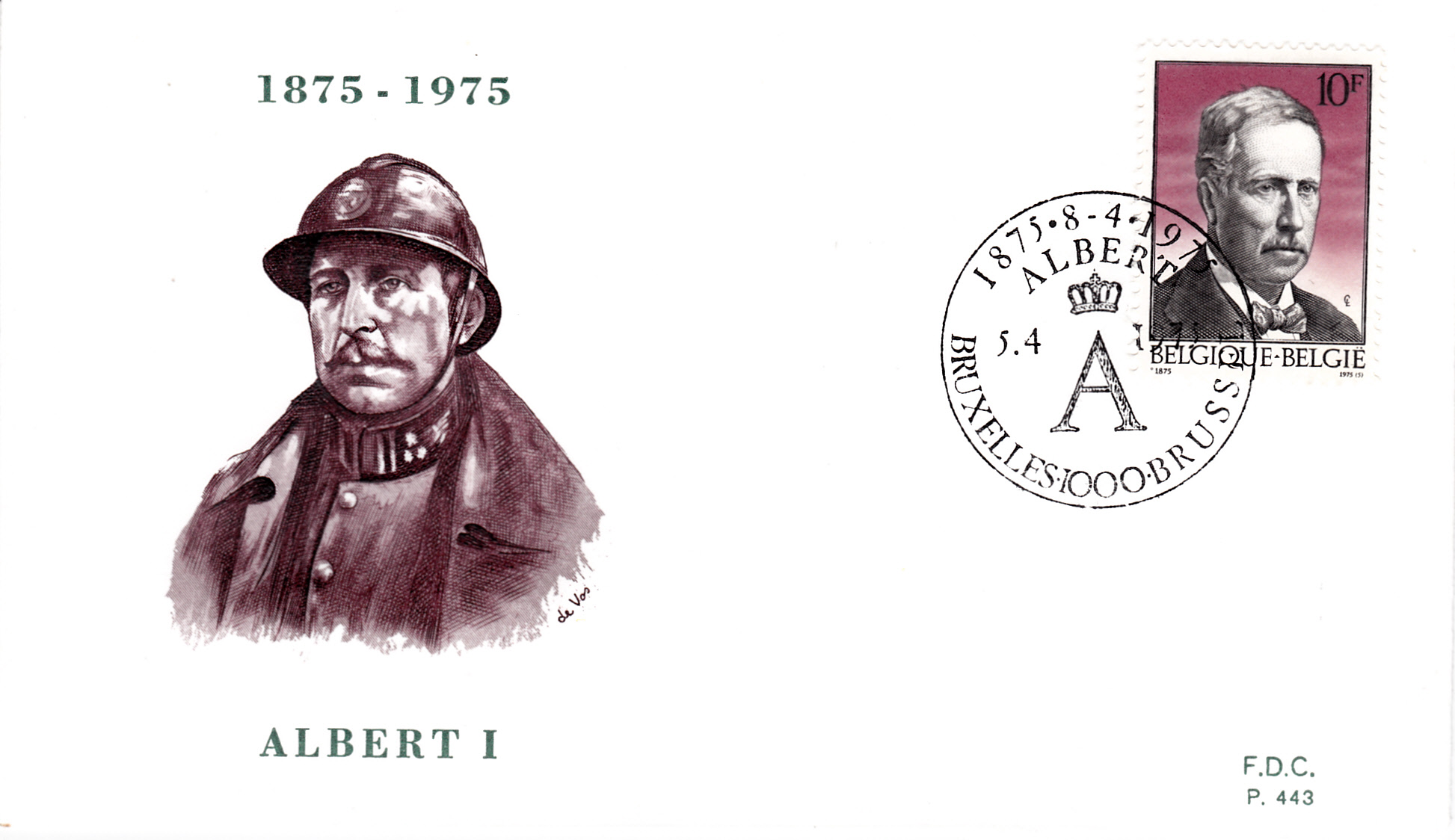 FDC mit der Marke zum 100. Geburtstag von König Albert I. ist in Belgien ebenfalls eine Marke (MiNr 1810).