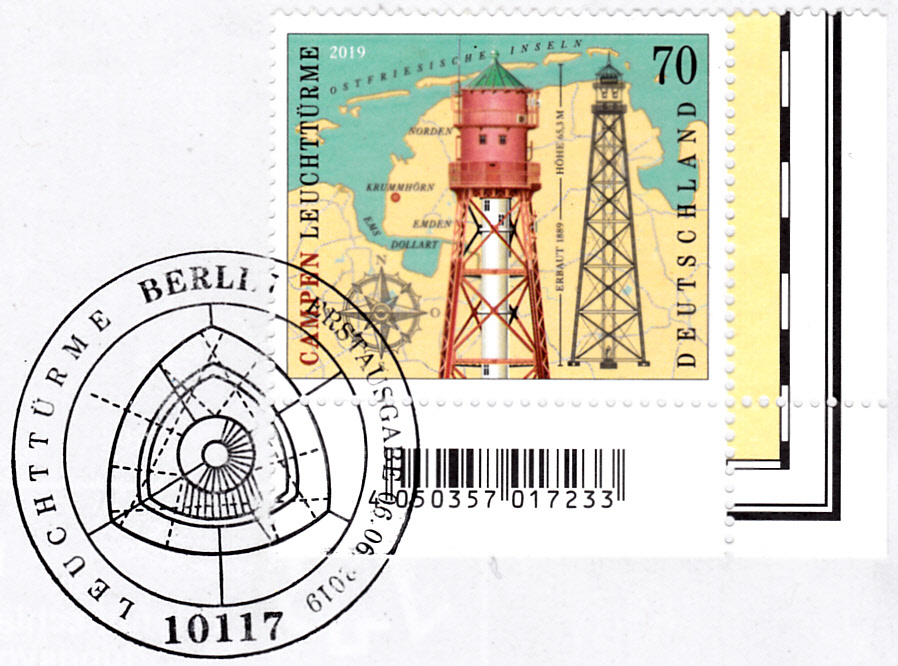 Am Ausgabetag der Marke Leuchttürme Campen wurde auch in Emden ein Sonderstempel mit dem Leuchtturm Campen verwendet.
