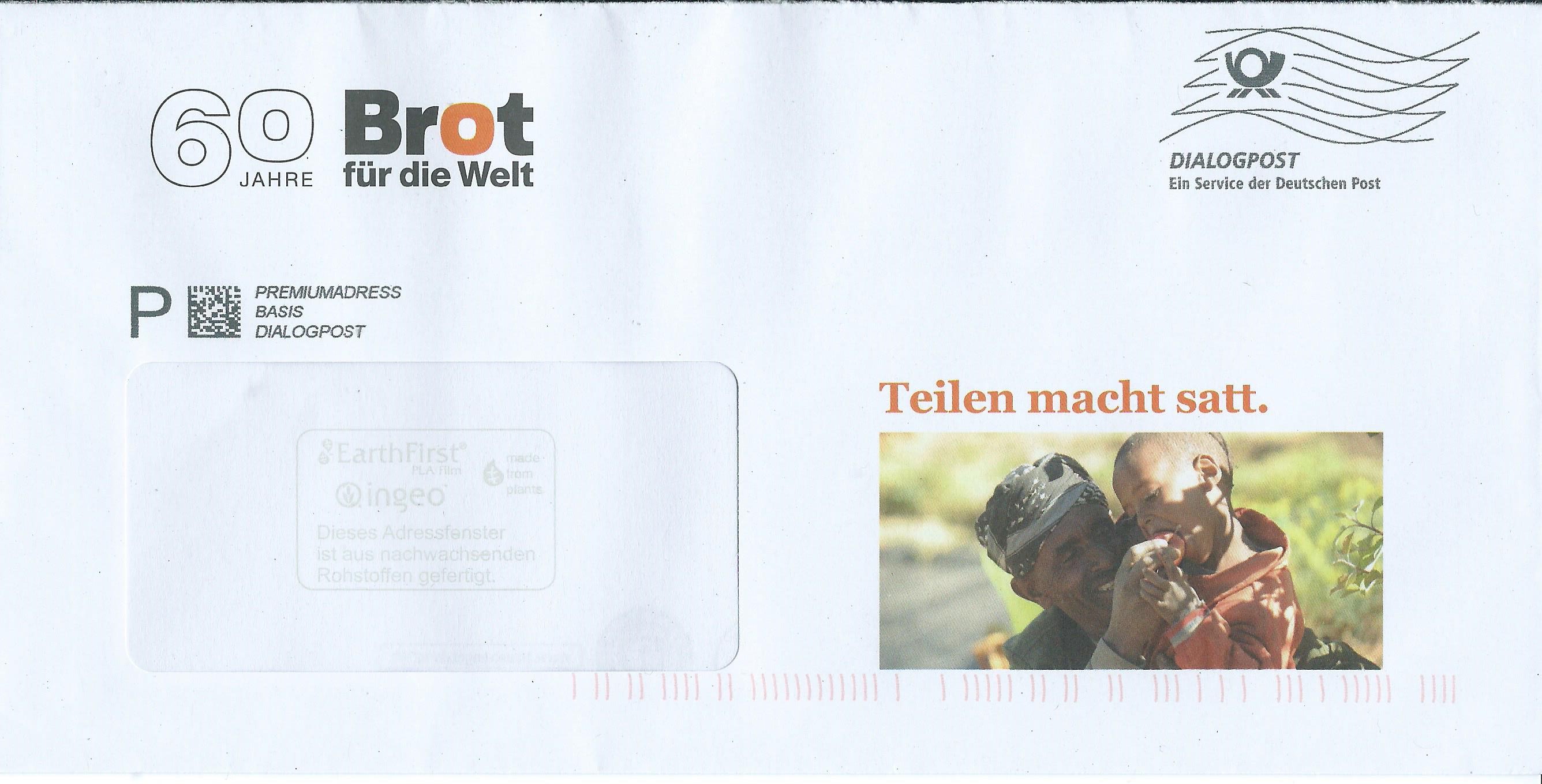 Diese Broschüre im Format 235 x 152 mm (unten geheftet) hat einen Wertstempel mit einer 45 Cent Marke "Altstadt von Rothenburg ob der Tauber" aus der Serie "Deutschlands schönste Panoramen" (MiNr 3455). Die Marke ist mit einer Welle "Dialogpost" entwertet.