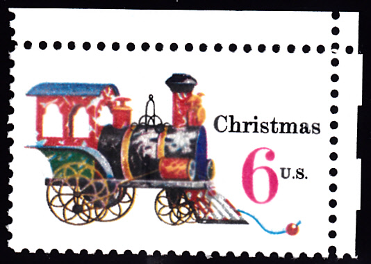 Diese vier Marken aus den USA wurden zusammenhängend in Viererblockanordnung gedruckt. Dieser Viererblock vom rechten oberen Bogenrand hat zwei Randbesonderheiten: ein Passerkreuz und einen "ZIP CODE"