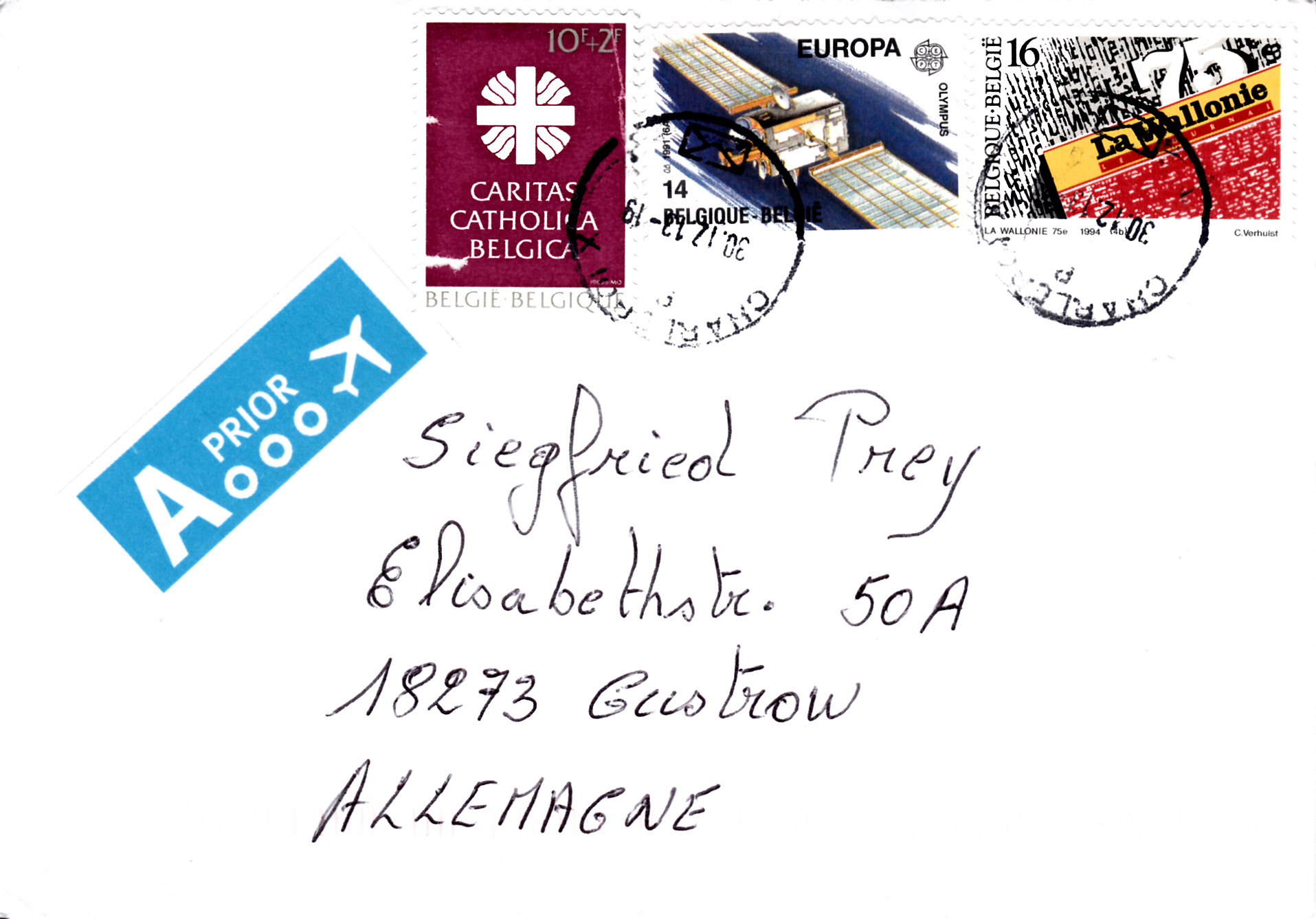 Auf diesem Brief wurde eine Europamarke 1991 zu 14Fr in einer Mischfrankatur verwendet.