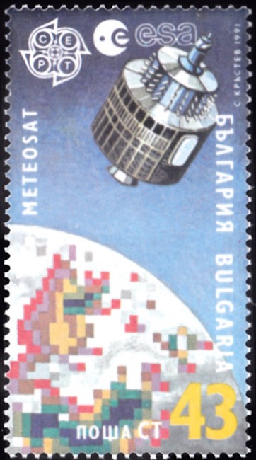 Auf der Europamarke 1991 aus Polen zu 43 Stotinki (MiNr 3901) ist ebenfalls ein Wettersatellit vom Typ "Meteosat" zu sehen.